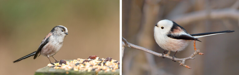 La petite tête présente également quelques rayures noires marquées, sauf s’il s’agit de l’espèce nordique moins commune et visiteuse hivernale, la mésange à queue blanche (Aegithalos caudatus caudatus). Les Queues longues construisent un nid sphérique de mousse avec une petite entrée latérale et ne se reproduisent donc pas dans des nichoirs. Ces petites boules duveteuses sont si spéciales qu’elles forment une famille à part, distincte de la soi-disant « vraie » !