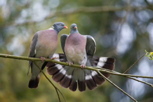 Les pigeons ramiers pondent généralement seulement 2 à 3 œufs, et il arrive souvent qu’un œuf meure à cause du nid désordonné composé de branches. On peut reconnaître le pigeon à la tache blanche dans le cou et à une couleur rose sur la poitrine. Lorsqu’ils volent, les marques blanches sur leurs ailes sont clairement visibles. Ainsi, vous pouvez distinguer le pigeon ramier du pigeon de la ville.