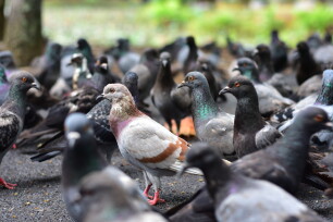 Le pigeon de ville est en réalité la variante domestiquée du pigeon des rochers. Ce pigeon est également appelé pigeon domestique, car il a été élevé depuis longtemps, tant pour la reproduction et la consommation que pour être utilisé comme pigeon leurre à la chasse. Ils vivent en grands groupes et peuvent polluer les bâtiments et causer des nuisances.