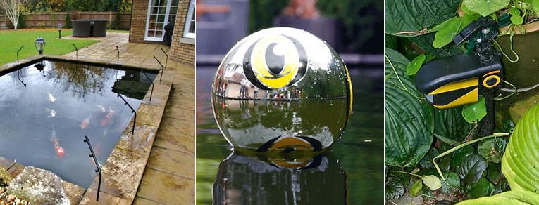 Accrocher de vieux CD qui reflètent la lumière du soleil au vent est un outil souvent utilisé, ce n’est pas beau mais ça peut fonctionner. Une autre façon d’utiliser la réflexion est un acier inoxydable brillant et sorcier . Le vent fait tourner les testicules des sorcières autour de l’étang, mais en général elles reposent dans un coin de l’étang. Une solution consiste à attacher un fil fin (ligne de pêche) avec un poids reposant sur le fond. Assurez-vous que le fil est un peu plus long que la profondeur de l’étang. Ainsi, la balle de la sorcière a encore un peu de jeu et la capacité de bouger dans le vent.