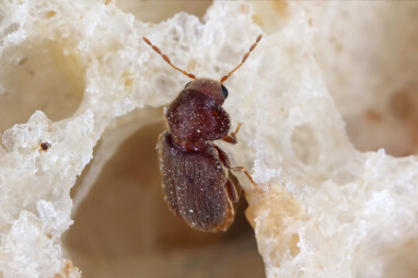 Le scarabée du pain (Stegobium paniceum) est assez commun et, comme le charançon des céréales, se nourrit principalement de produits amidonnés tels que les pâtes, les noix, le pain et les biscuits, mais aussi de chocolat et de nourriture pour animaux comme la nourriture pour chiens ou chats. Cela peut se propager rapidement dans notre garde-manger.