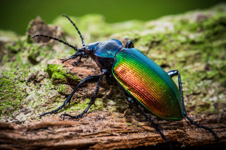 Également appelé le grand voleur de nymphes, c’est un scarabée indigène de la famille des scarabées terrestres que nous voyons principalement vers juin et juillet dans les zones boisées et agricoles. Son armure est finement profilée et se distingue par ses élytres verts brillants et cuivre. Un scolécimen adulte peut atteindre jusqu’à trois centimètres, ce qui fait du coléoptère l’un des plus grands de son espèce. Bien que le coléoptère soit en danger dans nos régions, son habitat s’étend davantage à travers l’Europe et l’Asie.