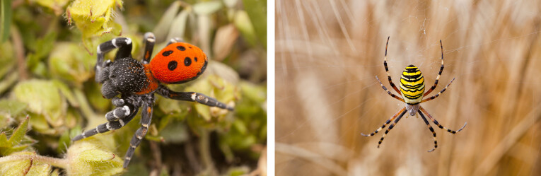 Nous abritons environ 670 espèces différentes d’araignées, dont certaines sont communes, tandis que d’autres sont rares, comme l’araignée de feu du printemps. Cette espèce particulière se distingue par son abdomen rouge frappant avec quatre grands points noirs et ses pattes noires avec des bandes annulaires blanches chez le mâle. Une autre espèce notable est l’araignée tigre, qui a un corps jaune frappant et un motif rayé noir et blanc. Ces araignées construisent généralement une toile d’orbe à ras de terre et attendent patiemment au centre que leurs proies se posent dans leur toile.