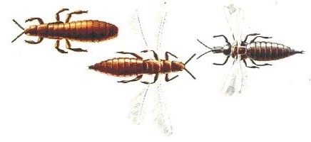 Les thrips sont de très petits insectes au corps fin et aplati. Leurs deux paires d’ailes étroites ont des franges en forme de plume, ce qui explique pourquoi elles appartiennent au groupe des ailes franjées (Thysanoptères). Il existe des milliers d’espèces connues. Comme ils ne peuvent pas bien voler et ont besoin de thermiques pour atteindre une altitude élevée, ils restent au sol en masse lorsqu’il fait sans vent et qu’il fait une chaleur oppressante.