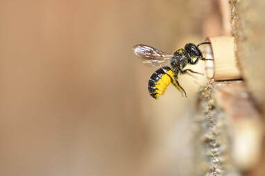 Dès que le soleil perce les nuages et qu’il fait plus chaud, les abeilles solitaires commencent à chercher un endroit où nicher. Habituellement, les premiers visiteurs de l’hôtel sont les abeilles maçonnes cornues et les abeilles maçonnes rouges, qui cherchent le tube parfait pour y pondre plusieurs œufs. Selon le type d’hôtel que vous avez, vous pouvez vous attendre à voir d’autres clients en plus des abeilles sauvages, comme des coccinelles, des crispies de dentelle, des papillons, des perce-oreilles,... ainsi que des espèces parasites.