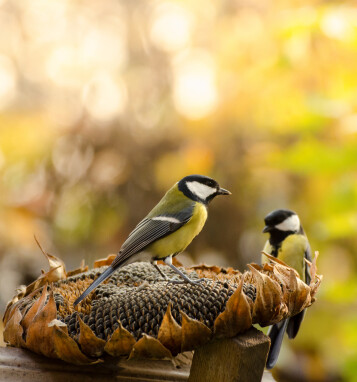 Laissez les têtes de graines des vivaces et annuelles, comme les tournesols. Ils constituent une source naturelle pour de nombreux oiseaux dans le jardin. Vous pouvez mettre la litière de feuilles collectée en tas ou la mettre dans un filet métallique ; Cela devient rapidement un abri pour insectes et mollusques, une source savoureuse de nourriture pour les oiseaux.
