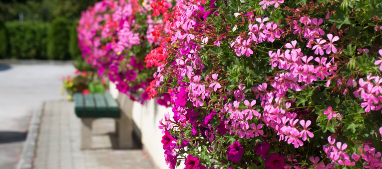 - Geef éénjarigen en perkgoed regelmatig water en geef wekelijks mest voor geranium en balkonplanten om de planten langer te laten doorbloeien.