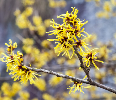 Het blijft nog even wachten op het voorjaar om iets te doen maar we kunnen al genieten van enkele vroegbloeiers zoals de Hamamelis of Toverhazelaar, Jasminum nudiflorum, Viburnum x  bodnantense ‘Dawn’ en de Helleborus.