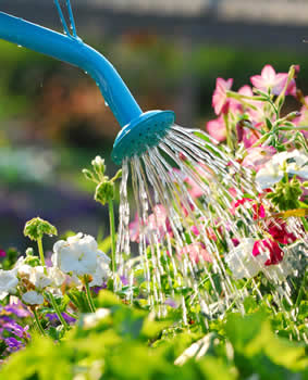 - Geef op tijd water waar nodig: Geef potplanten de nodige hoeveelheid water. Denk hierbij vooral aan sierstruiken die door hun dichte bladmassa het regenwater tegenhouden naar de potgrond. Ook jonge gazons verdienen wat aandacht, maar ga niet overbodig sproeien bij droger weer. Water geven met de gieter is nog steeds de beste manier, zo weet je hoeveel water je verbruikt en geeft aan bepaalde planten. Gebruik uiteraard zoveel mogelijk gerecycleerd water.