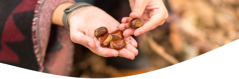 - Tamme kastanje (Castanea sativa): één van dé noten die de maand september rijkelijk te bieden heeft. De tamme kastanje onderscheidt zich van de wilde kastanje met zijn lange stekelige bolsters. Let bij het verzamelen goed op dat je dus geen wilde kastanje opraapt want deze zijn giftig. De noot is lekker rauw alsook gepoft.