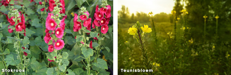 - Stokroos (Alcea rosea): deze tweejarige plant komt van nature voor in Centraal-Azië maar heeft zich over de jaren heen ook in onze streek verwilderd. En net deze verwilderde stokrozen geven kleurrijke bloemen die we kunnen verwerken in onze gerechten. De plant heeft een ontstekingsremmende werking, werkt zweetafdrijvend en helpt bij een teveel aan slijm. Gebruik enkel de bloemen en bloemknoppen. Fleur je salade op of zet een heerlijke stokrozenthee op de koffietafel.