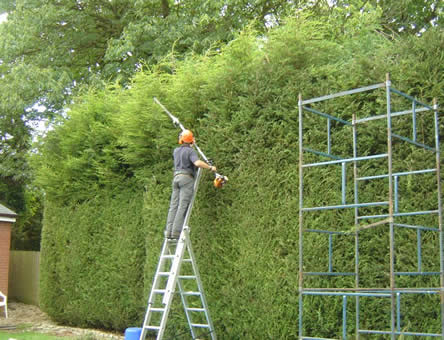 Snoeien van zeer hoge Cupressocyparis leylandii