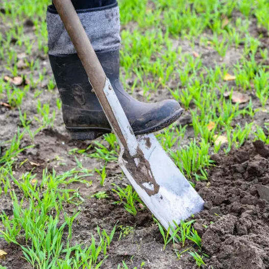 La pelle est un outil pratique avec lequel on peut couper les bords bien droits, parsemer le jardin, faire remonter racines et pierres, et écraser des morceaux durs de terre.