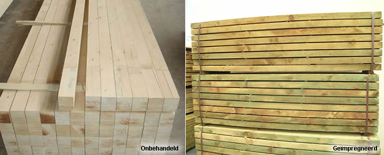 Grenenhout is afkomstig van het hout van de grove den (Pinus- soorten). Het is pakweg de meest gebruikte houtsoort in de Benelux voor allerhande toepassingen. Natuurlijke Europese grenen bevat heel veel kwasten en dit is naast de beperkte duurzaamheid meteen één van de hoofdkenmerken. Grenenhout voor het gebruik in de tuin dient altijd kwalitatief geïmpregneerd te worden om een lange levensduur te garanderen. Het hout wordt heel vaak gebruikt als constructiehout in de woningbouw en dit meestal op niet zichtbare plaatsen, ook hier is een duurzame behandeling steeds aan te raden. Een andere dennenhout- soort, die veelal samen met grenen over dezelfde kam wordt geschoren, is het vurenhout. Deze houtsoort is echter afkomstig van de fijnspar (Picea abies), die kennen we allen beter als de kerstboom in zijn eenvoudigste vorm. Vurenhout wordt heel breed toegepast als constructiehout in de vorm van balken en latten voor het gebruik in daken en schuren, ook als tuinhout is het populair voor weidepalen, balken, latten en zelf terrasplanken. Ook vurenhout heeft een beperkte duurzaamheid en dient dus kwalitatief behandeld te worden.