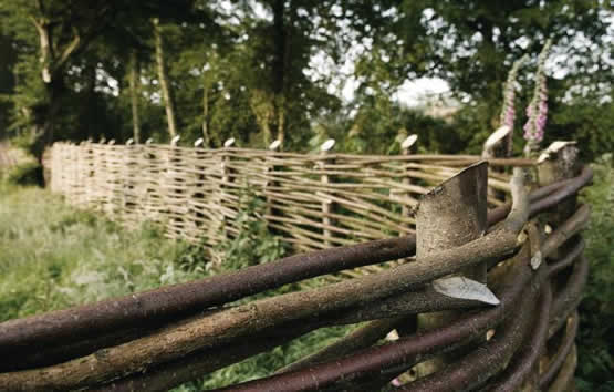 Deze vormen de basis van de schutting waarrond de twijgen zullen gevlochten worden. Plaats deze op ongeveer 40 tot 50cm van elkaar. Werk met twijgen of takken van 2 tot 3 jaar. Deze zijn nog flexibel genoeg, maar toch stevig om een degelijke schutting mee te maken.