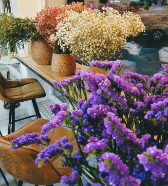 • Bloemen naar keuze om de hoepel te versieren: Limonium, Gypsophila (verkrijgbaar in diverse kleuren), Prunus bloessems, meiklokjes, Alchemilla mollis, Bupleurum, Pennisetum...