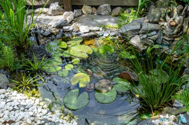 - Zet de vijverpomp op een paar stenen om verstoppingen in de zomer te voorkomen. Zodra het water weer de 10 graden bereikt, kun je de pomp en filters weer inschakelen. Vergeet niet om ze schoon te maken als je dat afgelopen najaar niet hebt gedaan.