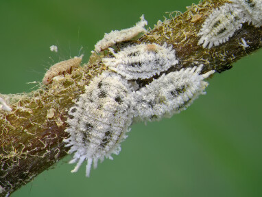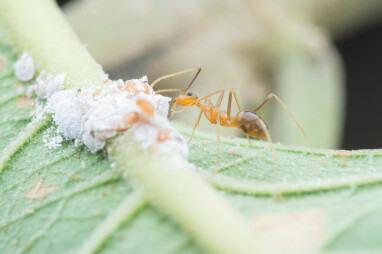 En net zoals bij bladluizen, trekken wolluizen ook mieren aan. Ze worden aangetrokken door de honingdauw en in ruil daarvoor beschermen ze de wolluizen tegen hun natuurlijke vijanden.