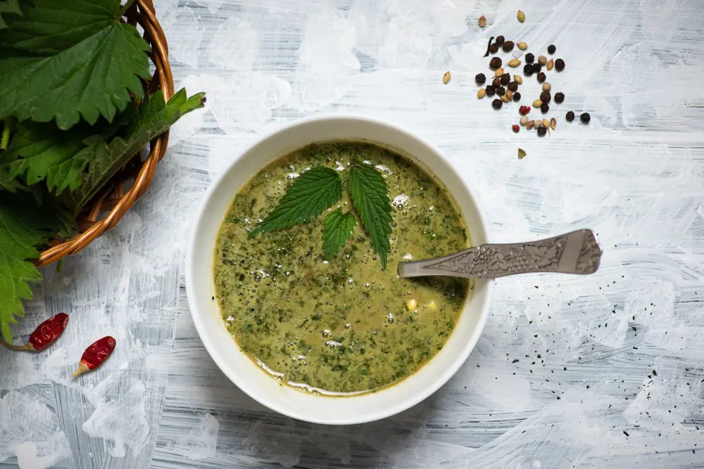 Om brandnetelsoep klaar te maken, neem je ongeveer 200 g vers geplukte brandnetelpunten en voeg daar 450 g aardappelen toe (geschild en in blokjes gesneden). Kook de aardappelen tot ze heerlijk zacht zijn en stoom ondertussen de brandneteltoppen. Zodra beide ingrediënten klaar zijn, voeg je ze samen in een pot met een liter smakelijke groentebouillon. Breng dit geheel aan de kook en gebruik dan een staafmixer om alles mooi glad te mixen. Voeg een scheutje verse room en wat gehakte peterselie toe voor extra smaak. Kruid met peper en zou af naar eigen smaak en voilà... een heerlijke, romige brandnetelsoep waar je van zult genieten!2. Lentegroen