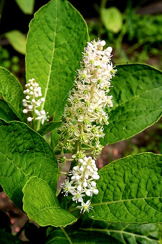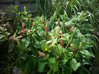 Aziatische of oosterse karmozijnbes / Phytolacca esculenta met rechtopstaande trossen