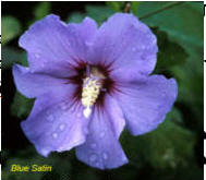 Hibiscus syriacus ‘Blue Bird’ - enkele bloemen, blauwpaars, hoge struik.