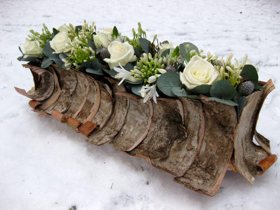 Arrangement floral d’hiver avec bandes d’écorce d’arbre