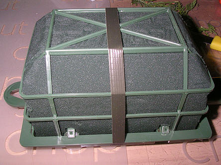 - steek nu rondom kleine takjes conifeergroen, dit is de afwerking van de onderzijde (zie foto)