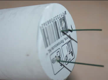 Met deze 2 stukjes pookdraad lukt het om de kaars gemakkelijk vast te zetten.