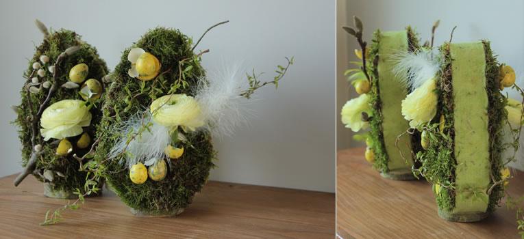 Kram de plastic buisjes voor je bloemen niet té hoog. Verdeel je decoratie gelijkmatig over beide zijden van het ei : het mag van alle kanten gezien worden.  Succes gegarandeerd!