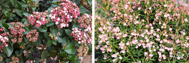 Viburnum tinus ‘Lisa Rose’: wordt ook wel sneeuwbal genoemd omwille van de witte bloemschermen die tijdens de wintermaanden te zien zijn. De bloemschermen bestaan uit vele kleine roze tot wit verkleurende bloemen wat de plant zeer aantrekkelijk maakt. Na de bloei verschijnen fraaie blauwe bessen. Hij houdt van een plekje in de zon tot halfschaduw en staat het liefst wat beschut tegen strenge vorst. De heester kan ook als haag of als sierheester in een pot op het terras gebruikt worden.