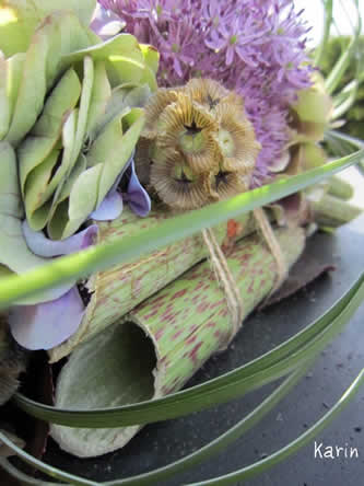 Voici un guide étape par étape pour un magnifique bouquet floral d’été avec des bâtonnets d’alium, d’hortensias et de polygonum.