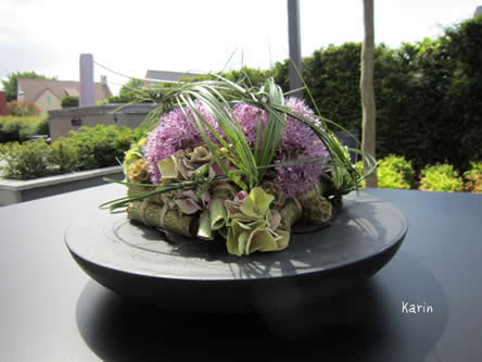 • Deze schaal is ook gebruikt bij dit bloemstuk "roze rozenbol maken".