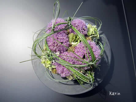• Snij met een scherp mes de Allium goed schuin aan en verdeel deze bovenop het steekschuim.