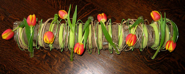 o Als je tulpen heel buigzaam wil maken, kun je ze een uurtje uit het water in krantenpapier op een koele plaats leggen. Dan zijn ze buigzamer.