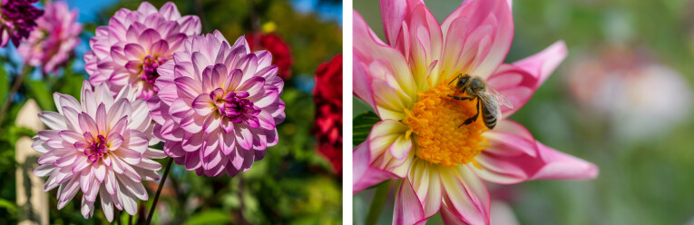 Maar de vaak excentrieke bloemvormen zijn niet altijd goed voor bijen en hommels. Dubbele bloemen hebben insecten niks te bieden. Daarom is het goed om ook enkelvoudige soorten uit te kiezen. Deze hebben meeldraden en stampers waaraan stuifmeel hangt en insecten zich voeden. Ook biologische Dahlia's zijn beter voor de bijen, hommels en vlinders.