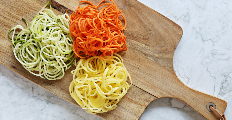 Om makkelijk pasta van jouw favoriete groente of fruit te maken, is een spiraalsnijder het ideale middel. Je vindt verschillende toestellen in de winkel, van manuele tot elektrische maar met een dunschiller kan je ook al linten als een soort tagliatelle maken. Mits wat oefening en de keuze van de juiste groente of fruit kan je in een handomdraai een heerlijk gerecht op jouw bord toveren. Mijn favoriet is spaghetti van courgette. Met een goede saus en kruiding vind ik het minstens even lekker als de traditionele spaghetti. Je moet het gewoon geproefd hebben!