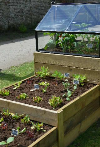 Kweek je groenten en kruiden liefst in biologische grond. Koop zeker geen goedkope of merkloze potgrond, die bevat onvoldoende voedingsstoffen en droogt veel te snel uit; daarin komen je groenten al snel in de problemen. Voor een vierkante meterbak van 40 centimeter hoog heb je in totaal 400 liter (geen paniek, een liter is geen kilo!) vulling nodig, voor een bak van 20 centimeter is dat zo'n 200 liter. Zo bouw je je moestuinbak op: