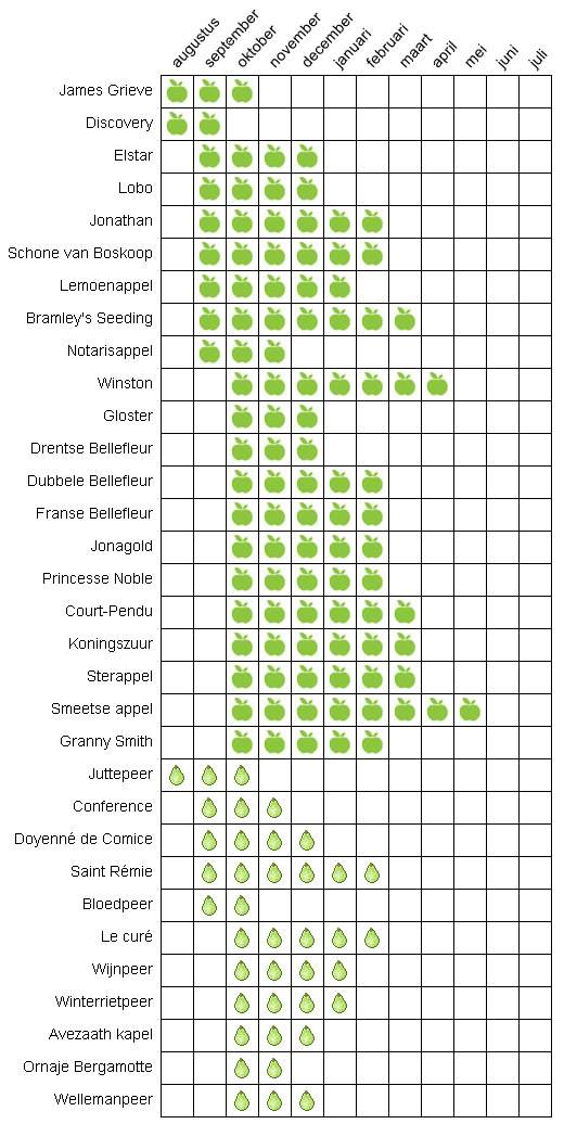 Overzicht bewaartijden voor enkele appel- en perenrassen
