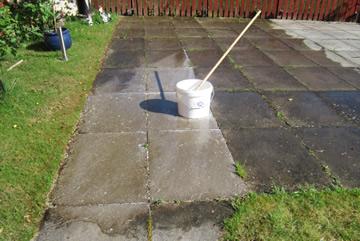 Zand strooien op het terras en daarmee de oppvervlakte te schrobben kan ook helpen. Door de schurende werking van de zandkorrels schuur je de algenstructuur ook weg.
