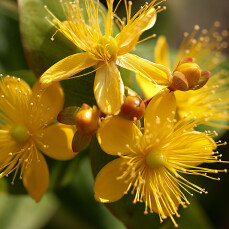 St-Jansolie is prima om de spiertjes een goede massagebeurt te geven. St-Jansolie zorgt voor een goede doorbloeding van de weefsels. Er komt dan extra zuurstof bij en die kunnen je spieren wel gebruiken. Ook bij kneuzingen, verstuikingen en spierverrekkingen doet die rode olie goed. St-Jansolie ontsmet, heelt en stilt de pijn.Als je St-Jansolie voor sportaangelegenheden wil gebruiken, pluk dan 250 gram St-Janskruidtakjes die in juni in bloei staan. Giet er een liter koudgeperste olijfolie over en een kwart liter droge witte wijn. Laat de olie drie weken op een warme plek staan, maar niet in de volle zon. Elke dag even schudden en genieten van de mooie kleur die je massageolie langzaamaan krijgt. Na drie weken giet je de olie in een schaal. Laat de wijn gedurende drie dagen verdampen. Leg er een dunne doek over. Voor diegenen die met een bezwaard hart de wijn zien opgaan in rook volgt hier de verklaring. Deze bewerking doodt de aanwezige micro-organismen. Zo voorkom je besmettingsgevaar. Giet de olie in een plastic flesje. Dat is handig en veel minder gevaarlijk, als je valt. En dan maar op stap in de natuur.