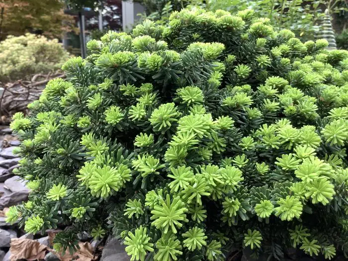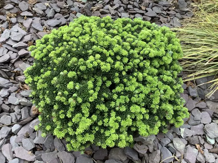 Abies koreana 'Brilliant' est un conifère nain vert.