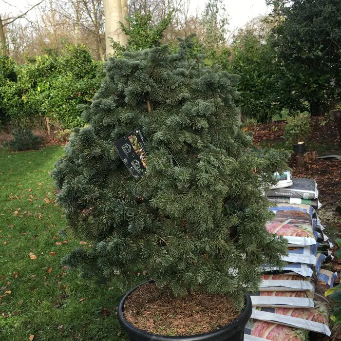 Abies lasiocarpa 'Argentea' est un conifère nain sphérique à croissance lente avec des aiguilles vert foncé.