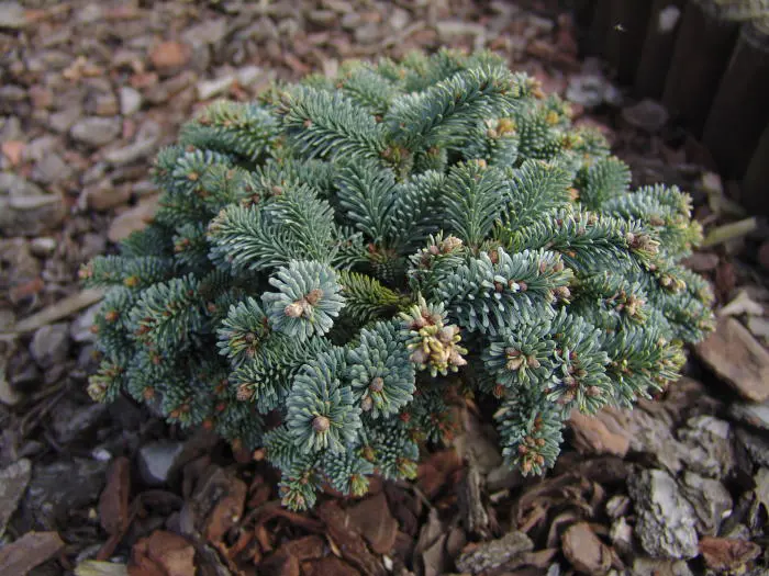 Ce conifère nain aux aiguilles bleu-argenté atteint une hauteur d’environ 30 cm après 10 ans.