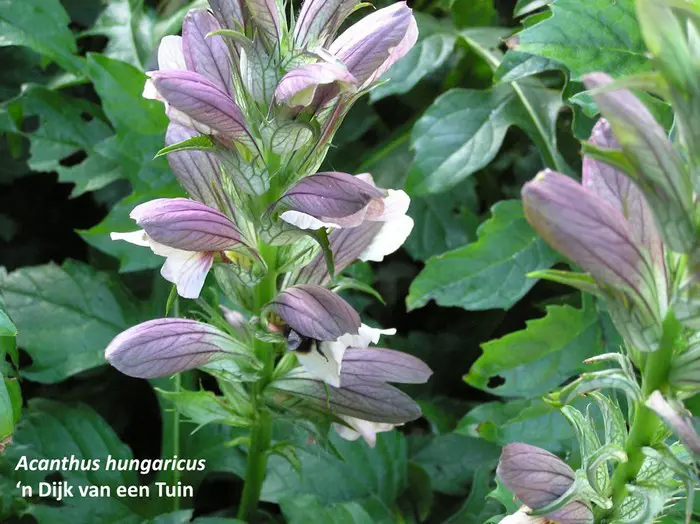 Acanthus hungaricus est une vivace majestueuse d’une grande valeur ornementale qui donne de la structure au jardin grâce à ses grandes feuilles et ses fleurs en forme de pointe.