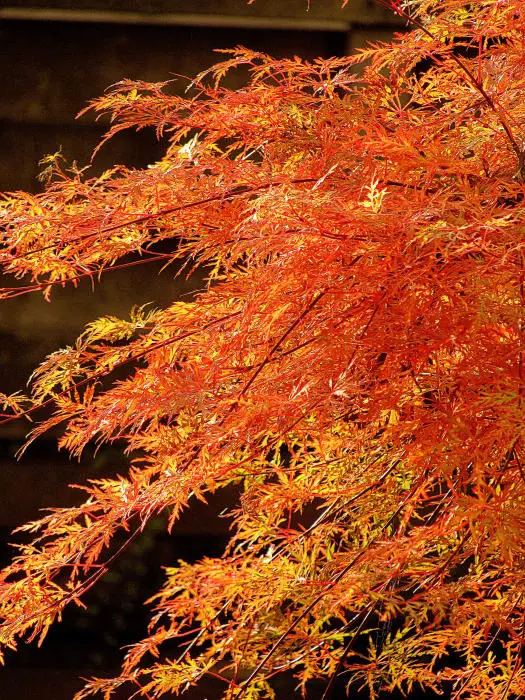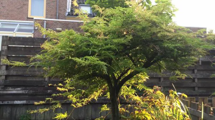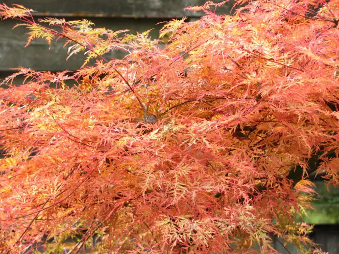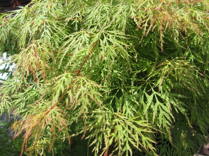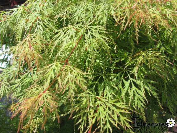 Les feuilles sont très fines et profondément coupées en fines bandes. Elle change de couleur, passant d’un vert printemps clair à un vert émeraude en été pour prendre de magnifiques couleurs orange-rouge en automne.