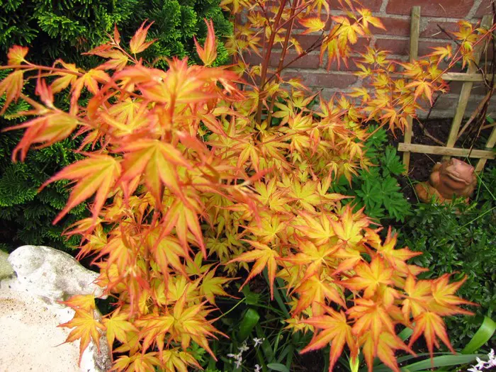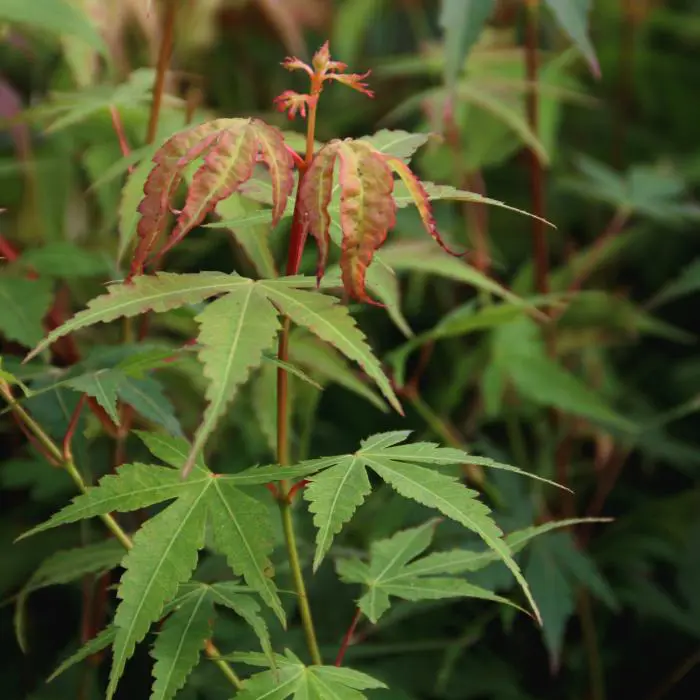 C’est une belle variété, des feuilles jaunes à vert doux avec des bords rouge-orangés au printemps, qui changent rapidement en orange puis en vert profond en été. À la fin de la saison, les feuilles sont un festin rouge, orange et jaune.