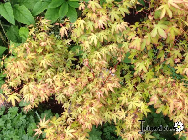 Acer palmatum 'Katsura' est un arbuste/petit arbre dressé, à croissance lente, fortement ramifié.