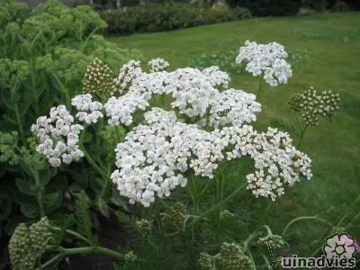 C’est un pousseur robuste avec de magnifiques pinnats vert foncé, des feuilles aromatiques et des fleurs aromatiques, avec des ombrelles aplaties en forme d’ombelles de fleurs blanches.