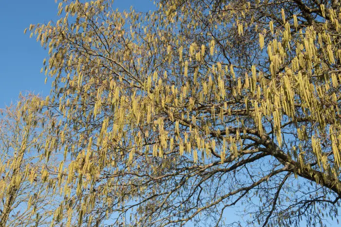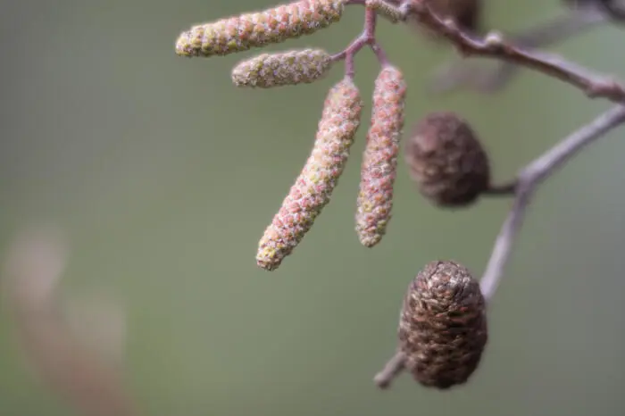 Au début du printemps, les chatons fleurissent sur l’arbre, après l’été, les aulnes apparaissent et restent tout l’hiver.
