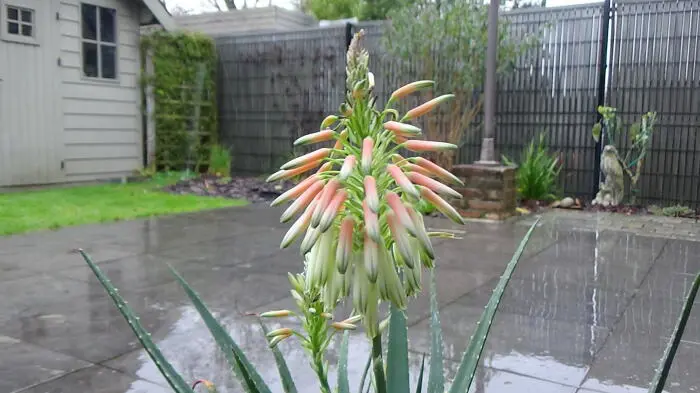L’aloe 'SAFARI Sunrise' fleurit avec de nombreuses tiges dressées et des grappes de fleurs tubulaires de couleur crème qui transforment ensuite le saumon orange en corail.